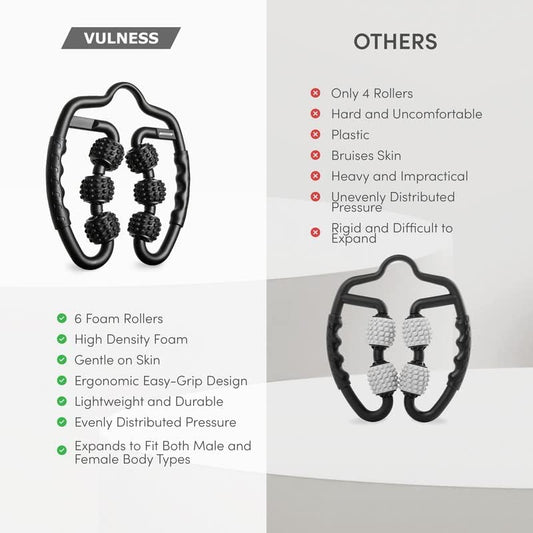 Massage Roller for Neck Thigh Calf and Leg | 6 Wheel Fit Personal Muscle Handheld Deep Tissue Trigger Point Foam Myofacial Tools Pro Recovery R8 Roll Abductor Manual Pain Relief (Noir Scent)