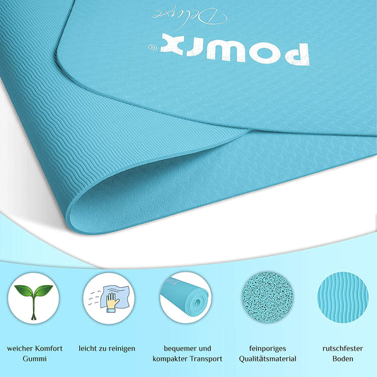 POWRX Yoga Mat TPE with Bag | Excersize Mat for Workout | Non-Slip Large Yoga Mat